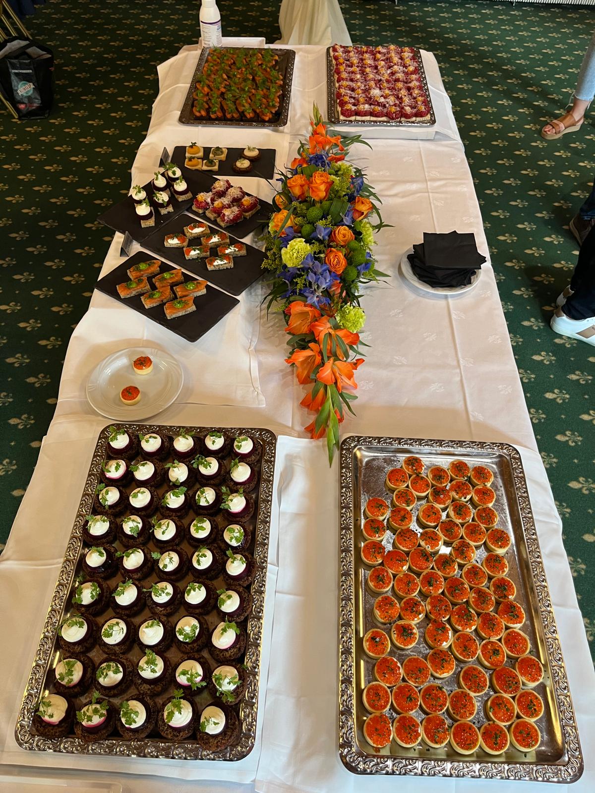 - puheenvuorot juhlasalissa cocktail-palatarjoiluineen